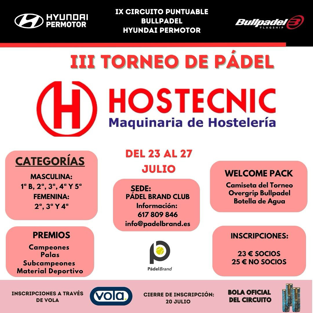 III TORNEO DE PÁDEL HOSTECNIC - 6ª PRUEBA PUNTUABLE CIRCUITO BULLPADEL HYU